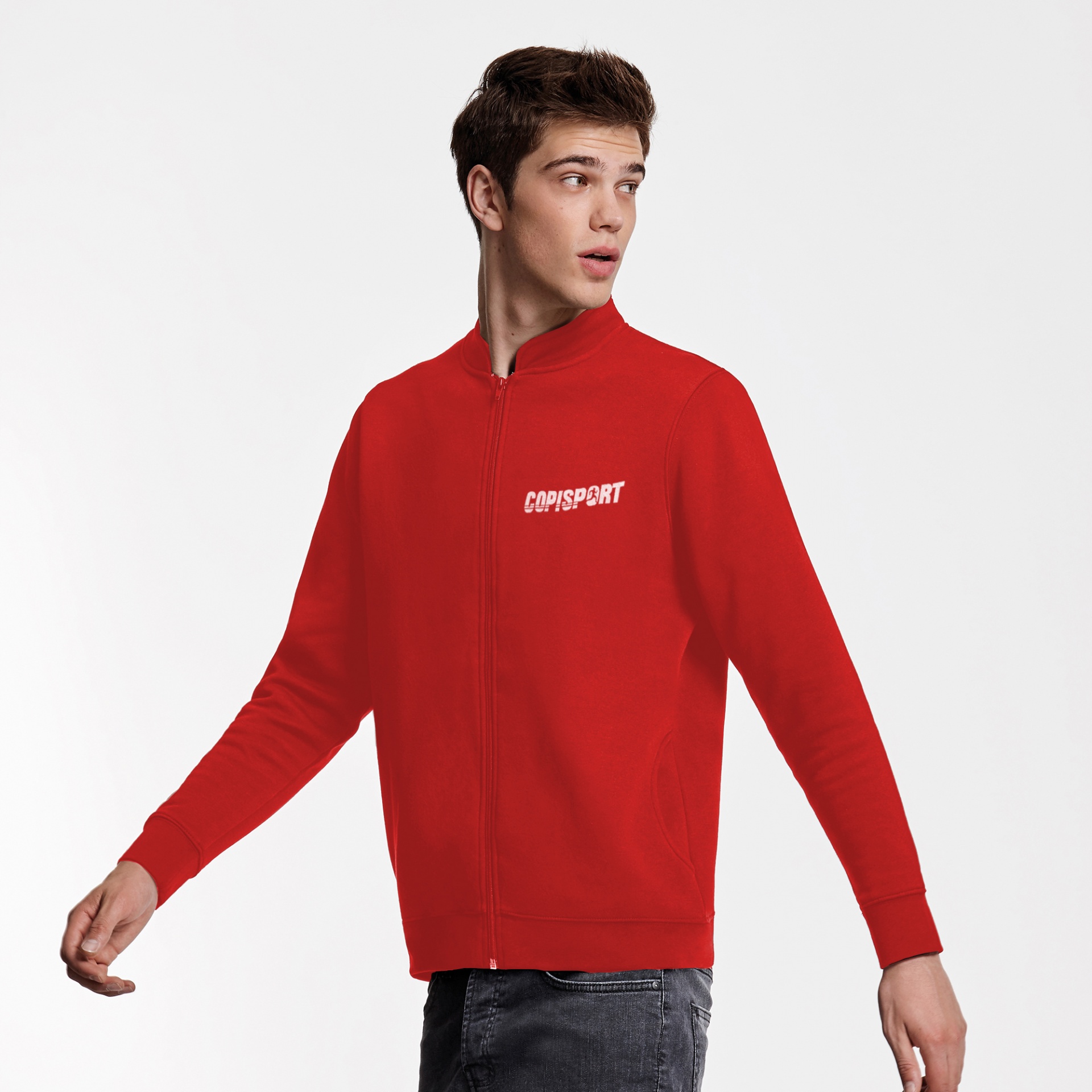 Descrição Casaco em pelúcia cardada com gola Mao. Tapa costuras reforçado no interior da gola. Fecho central com alça no mesmo tom. Punhos e cós canelados 1x1. Bolsos laterais. 50% algodão / 50% poliéster , pelúcia cardada , 290 g/m²
